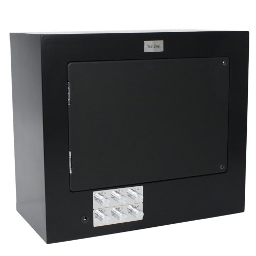 Tech Swiss, introduces their newest innovative watch winder line to the market. With the latest technology, this modern carbon fiber design winder will keep 6 of your automatic watches wound and ready to wear. A watch winder simulate the human hand motion, so that it will keep your wrist watch running smoothly. The winder comes with 4 individual turntables with built-in pre-programmable modes allows you to choice the direction and turns per-day depending on the make and model of the watch. The winder has 4 preset directions clockwise, counter-clockwise or bi-directional. Select the rotations per day, 3 different settings 800, 1400, 1600 rotations per day. Unit comes with Japanese Motor. The winder offers plenty of room between glass and base of rotation holder 1 1/4". Winder can be placed on desk or dresser. A winder is a great way to store, display and wind your watch all in one unit. An adjustable watch holder mount fits almost any size wrist watch. Exterior of winder is wood with carbon fiber design and a black leather interior. Lockable glass front cover. Operate on AC adapter included. Operating Manual. 1 year Limited Warranty. Dimension: 13"H x 15"W x 8 3/4" D Exclusively by Tech Swiss