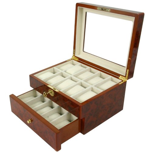 - Luxurious Watch Box For 20 Timepieces Burlwood Finish